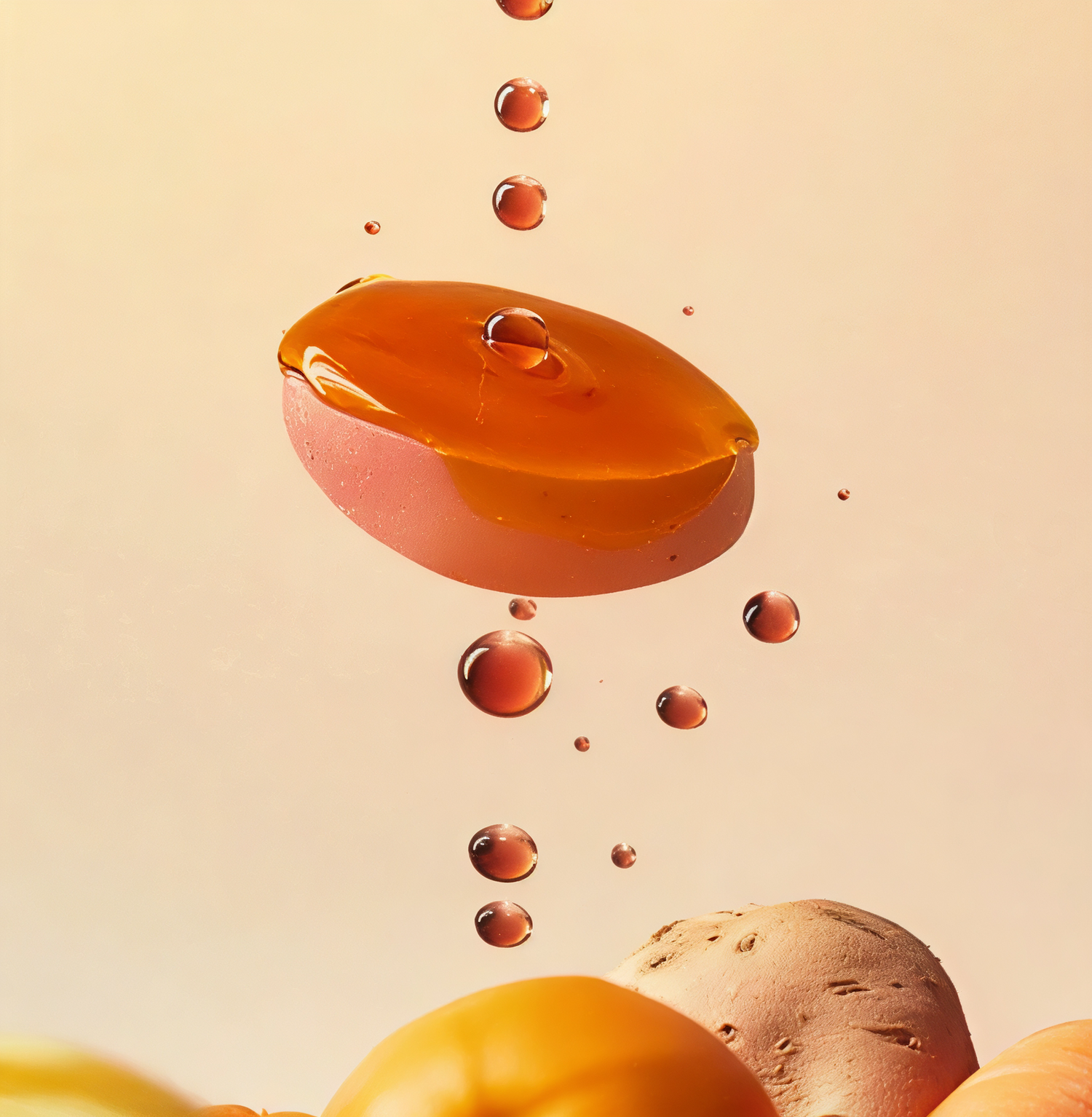Te ayuda a lograr un brillo natural gracias a la esencia vibrante de zanahorias, camote y zapallo (también presente en hojas verdes y pimentones).